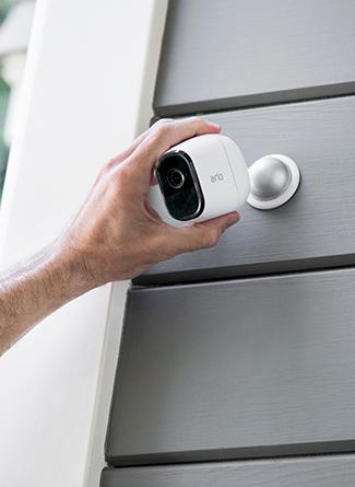 Die Arlo Pro sieht schick aus und ist sehr kompakt, wodurch sie kaum Platz benötigt. Sie ist kabellos und braucht keine Steckdose für die Stromversorgung. Arlo Pro Kameras können daher einfach und diskret überall platziert werden: inner- und außerhalb des Hauses, im vorderen Eingangsbereich, im Vorgarten, im Kinderzimmer oder im Garten hinter dem Haus.