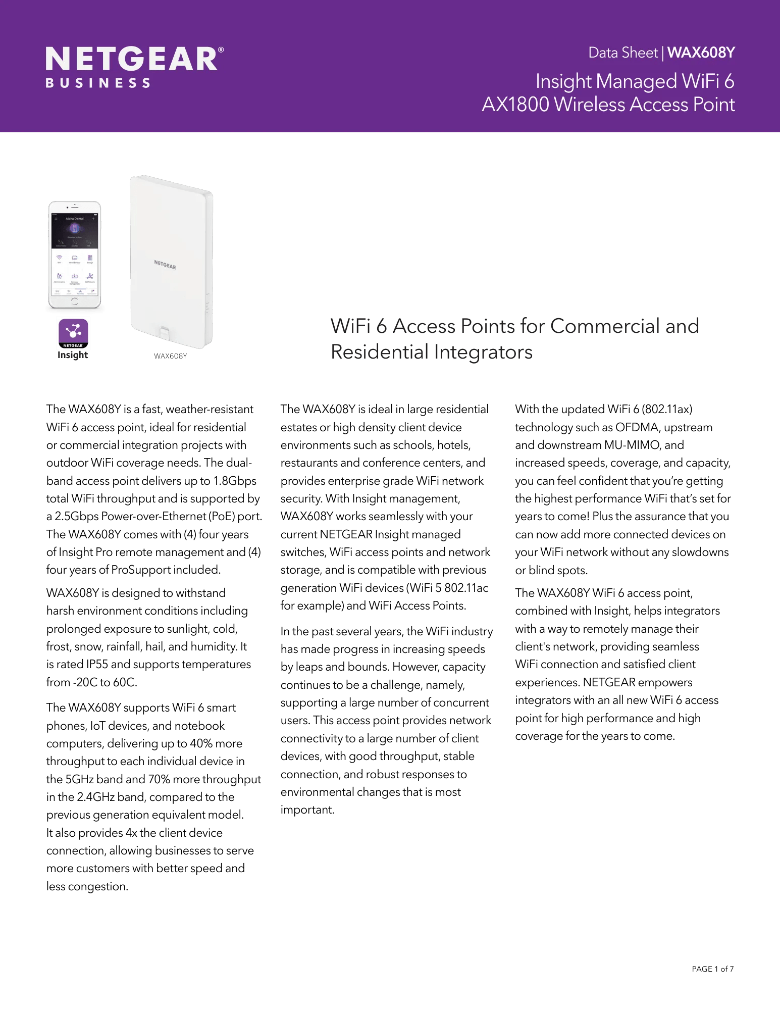 Exklusiv für gewerbliche und private Outdoor-Netzwerkinstallationen. Profitieren Sie von leistungsstarker und zuverlässiger WiFi 6-Konnektivität für all Ihre Geräte, selbst in hochdichte Umgebungen. Vereinfachte Sicherheit und Netzwerke auf Enterprise-Niveau für Zuhause und Unternehmen. Inklusive 4 Jahren NETGEAR Insight Subscription und NETGEAR ProSupport OnCall 24x7 Service Pack.