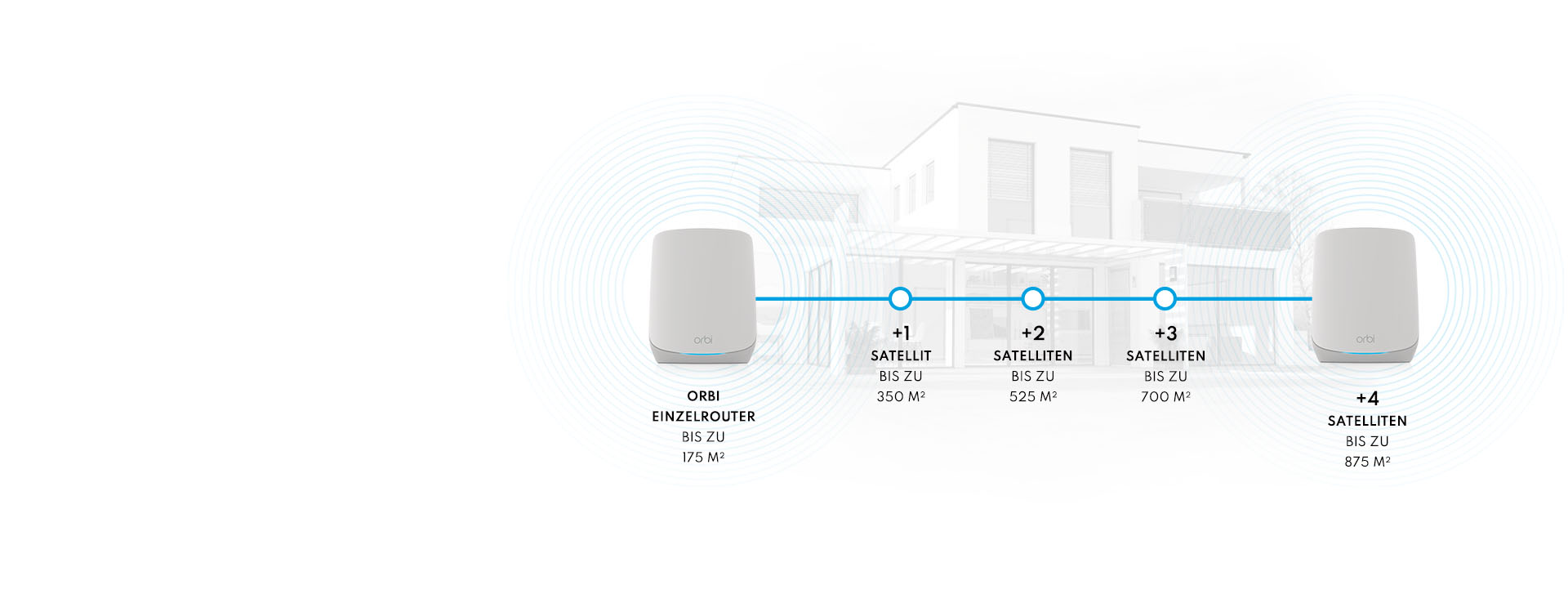 • Jeder Orbi Router : Unterstützt bis zu 6 Orbi-Satelliten
