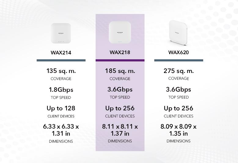 • Model Description : Essentials WiFi 6 AX3600 Dual Band Wall/Ceiling Mount, PoE Powered, Local Management (WAX218)