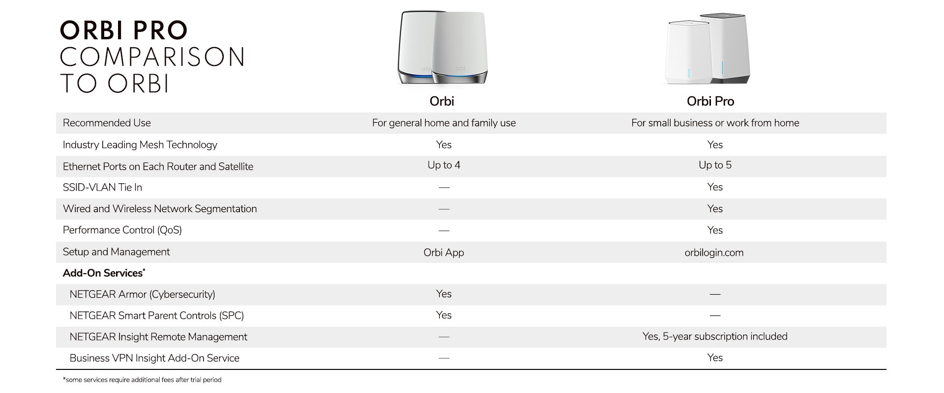 *30-day trial included with the purchase of an Orbi Pro. One Orbi Pro router is required in the main office, and one additional Orbi Pro router required in each branch or home office.