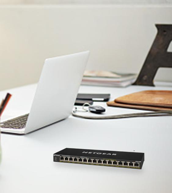 16 PoE+ ports with 380W power budget. Unmanaged Essentials Switches are easy, reliable, and affordable network connectivity for home and small offices. Providing power and data from a single Ethernet cable. GS316P GS316P-100AJS GS316P-100AJS