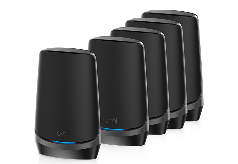 Orbi™ Quad-band WiFi 6E Mesh System, 10.8Gbps, Router + 4 Satellites – Black edition (RBKE965B)