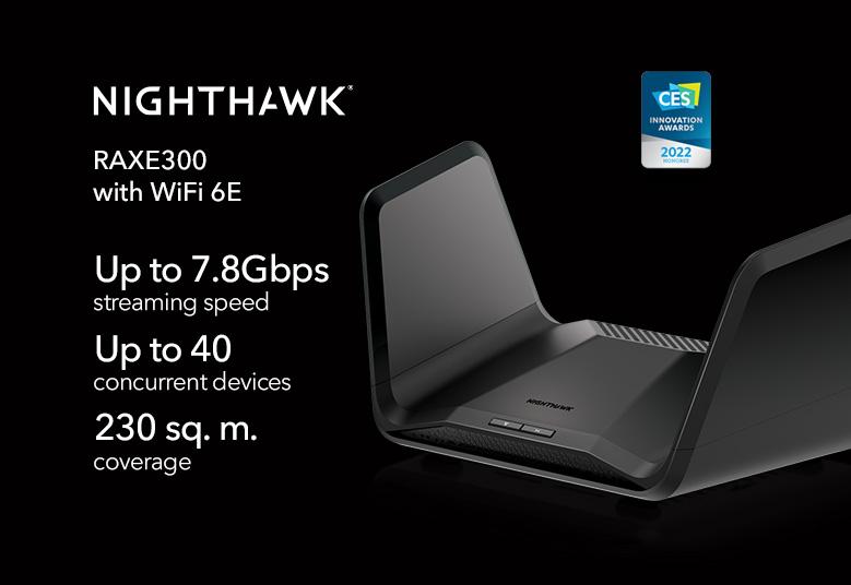 • Nighthawk® AXE7800 Tri-Band WiFi 6E Router (RAXE300)