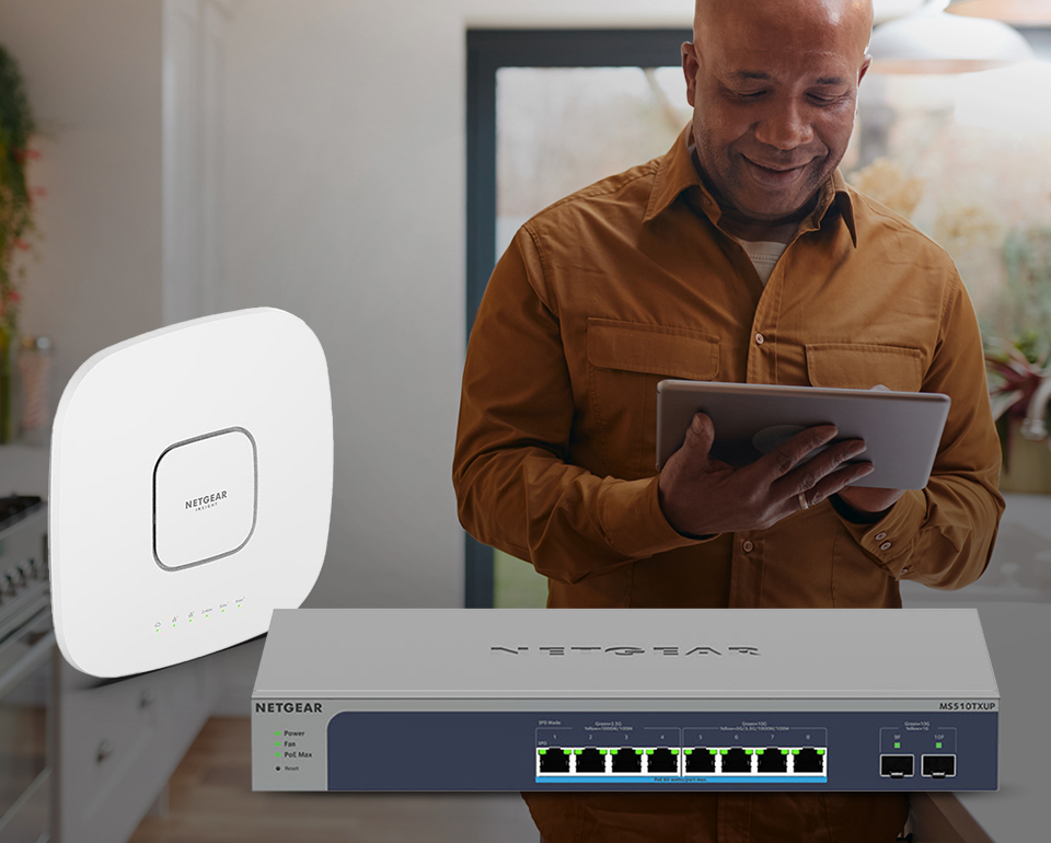 NETGEAR’s multi-gig switches provide the PoE power and high-speed throughput for WiFi 6 access points to maximize the connection of any device throughout the home.
