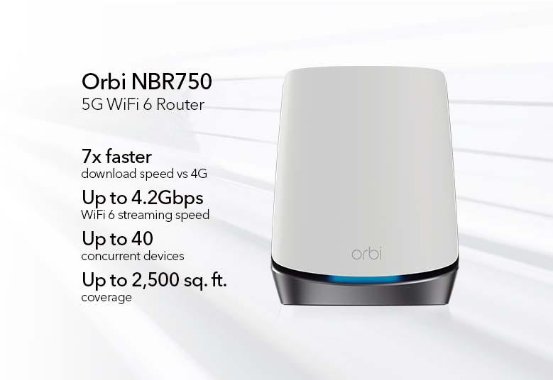 The Orbi 5G WiFi 6 Router brings mobile 5G technology into your home and delivers up to 1 gigabit internet speed. Perfect as your primary internet in areas without access to cable or DSL, or as a high-speed backup so you’re never offline - the Orbi 5G router puts you on the cutting edge of connectivity powered by the Bell 5G network.