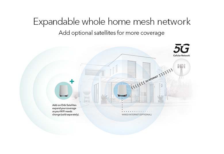 The Orbi 5G WiFi 6 Router is compatible with select Orbi AX Satellites* to create a mesh WiFi system, and easily extend WiFi coverage to every room in your home.