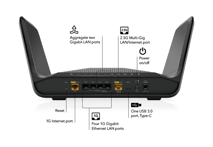 - Ethernet Ports : Five (5) 10/100/1000 Mbps Gigabit Ethernet ports + one (1) 2.5G/1Gbps Multi-Gig port