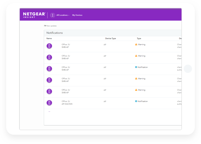 Netgear insight est la solution facile à utiliser qui permet aux propriétaires de petites entreprises, aux responsables INFORMATIQUES, aux prestataires de SERVICES DE messagerie et aux revendeurs à valeur ajoutée de gérer à distance et de manière centralisée les réseaux sur plusieurs sites, à partir d'un seul et même panneau d'affichage sur n'importe quel périphérique.