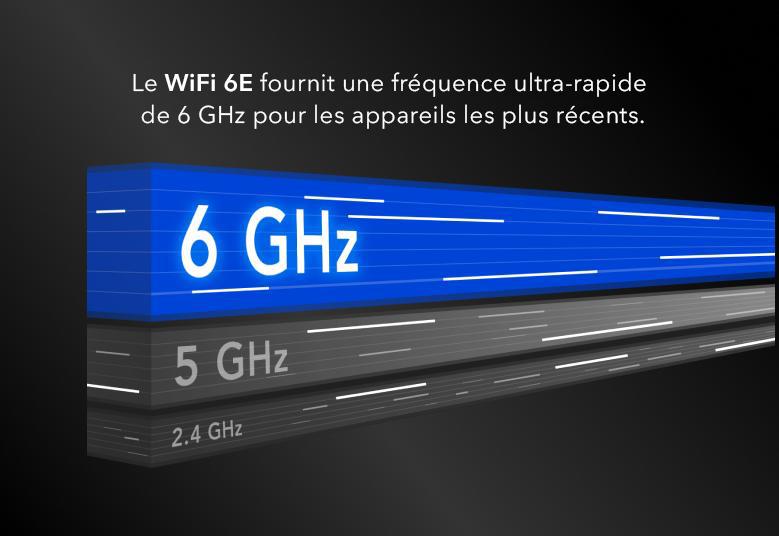 ◊WiFi 6E est réservé à une utilisation en intérieur uniquement. L'adaptateur secteur doit être branché pour accéder à la bande 6GHz.
