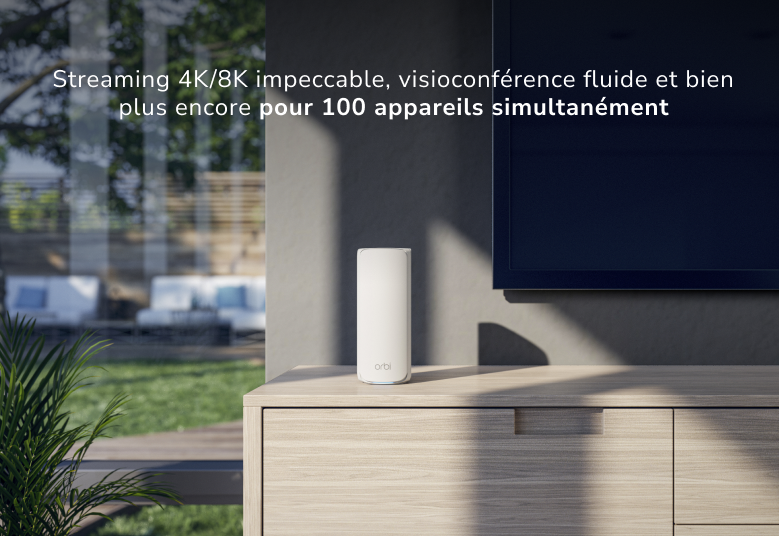 Avec la série Orbi 770, profitez d'une couverture parfaite dans toute la maison et d'une connectivité sécurisée pour travailler, streamer, jouer en ligne, et bien plus encore.