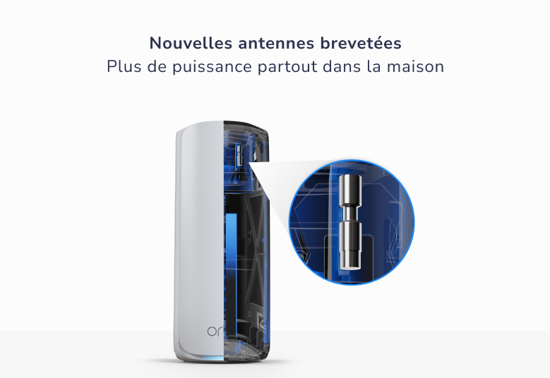 Le nouveau design innovant et les antennes hautes performances d'Orbi offrent une couverture WiFi exceptionnelle à 360 ° dans tous les recoins de votre maison, quel que soit son agencement.