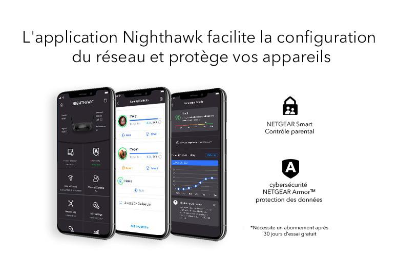 - Sécurité : NETGEAR Armor™ : protection avancée contre les cyber-menaces pour votre réseau domestique et vos périphériques connectés†† Abonnement d'un an inclus