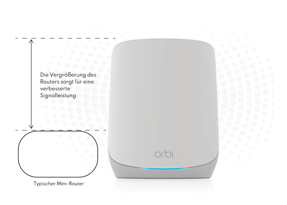 Die einzigartige Form und Höhe von Orbi umschließen Ultra-Premium-Hochleistungskomponenten, um eine deutlich bessere Abdeckung und Gesamtleistung als die Konkurrenz zu bieten.
