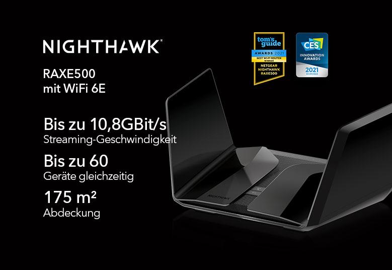 - Nighthawk® AX11000 Tri-Band-WiFi 6E-Router (RAX500)