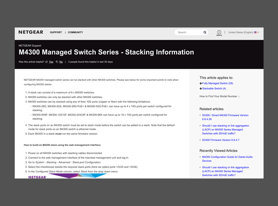 Switches manageables Série M4300 - Informations sur le stack