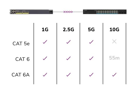 La technologie Multi-Gigabit 5 vitesses, intégrée dans les switches multi-vitesse NETGEAR, permet à vos appareils de dépasser la barrière imposée par le Gigabit.
