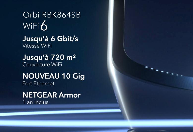 - Le service de Cybersécurité NETGEAR Armor® ™ offre un bouclier de sécurité automatique pour votre WiFi et les périphériques connectés (PC, téléphone, caméra, TV, Echo, Etc.) pour une protection en temps réel contre les pirates et une confidentialité accrue grâce au VPN. Abonnement de 1 an inclus 1.
