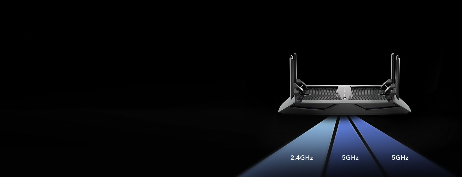 Tri-Band WiFi changes the game for today’s home WiFi networks. One 2.4GHz band and two 5GHz WiFi bands provide the capacity, flexibility, and intelligence to assign each device to the optimal WiFi band for the maximum speed.