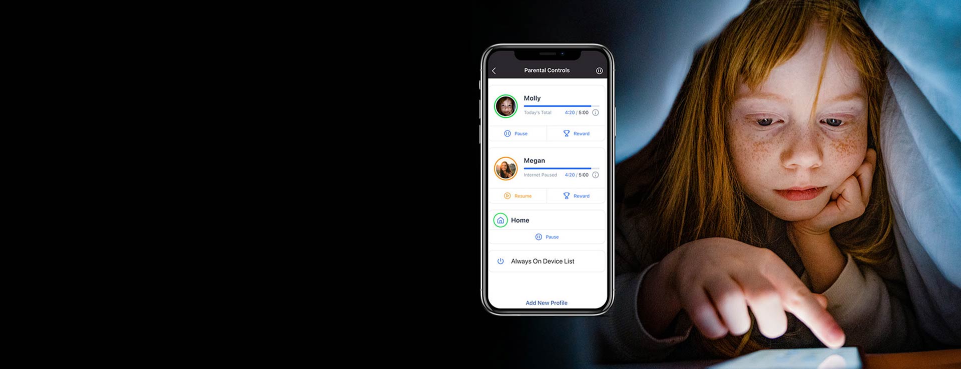 - NETGEAR 智能家长控制™—通过连接的设备轻松管理孩子的在线时间‘∞