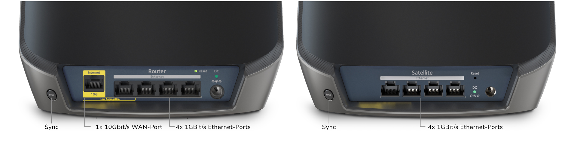 Ein (1) 10GBit/s-Multi-Gigabit-Ethernet-WAN-Port, vier (4) 1GBit/s-Gigabit-Ethernet-LAN-Ports