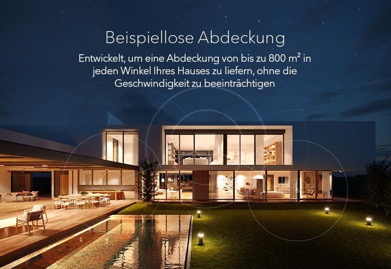 Entwickelt für eine beispiellose Abdeckung und Leistung in Ihrem gesamten Zuhause. Profitieren Sie von einer blitzschnellen Geschwindigkeit von bis zu 10,8 GBit/s für alle Geräte in jedem Raum.
