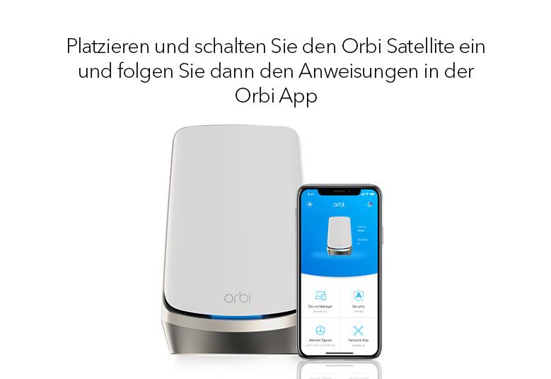 Schalten Sie einfach den Orbi Satellit ein und richten Sie ihn mit der Orbi App ein