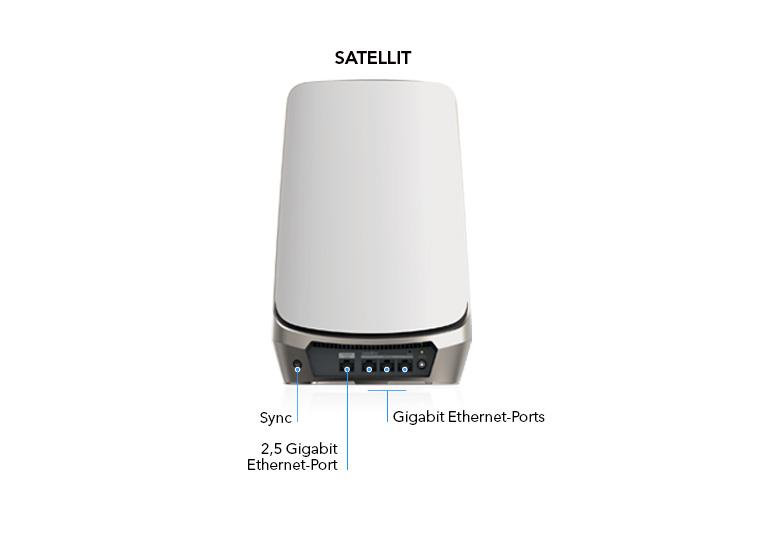 • Satellit-Ports (jeweils) : Ein (1) 2,5Gbit/s Multi-Gigabit Ethernet-LAN-Port (jeweils)