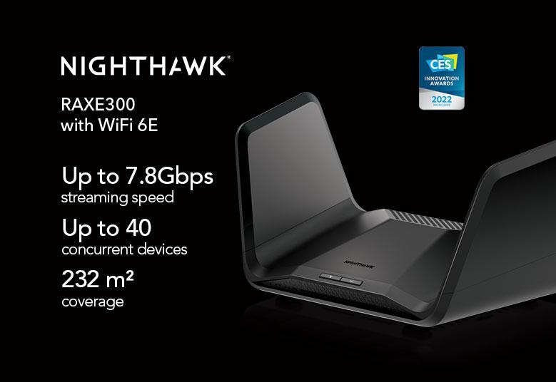 - Nighthawk® AXE7800 Tri-Band WiFi 6E Router (RAXE300)