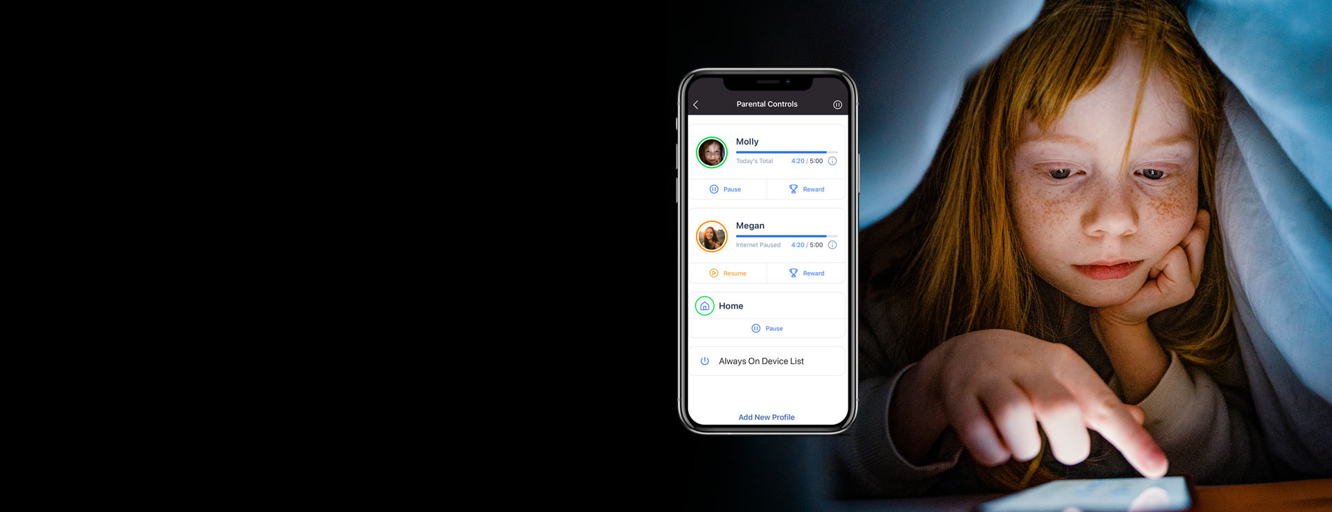 Gestionar el tiempo de sus hijos en línea nunca ha sido tan fácil. No es necesario quitar ningún dispositivo: Con sólo unos clics, puede crear perfiles para cada miembro de la familia, poner en pausa Internet en los dispositivos y mucho más*. Comience a crear hábitos en línea saludables hoy mismo.