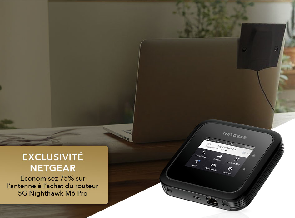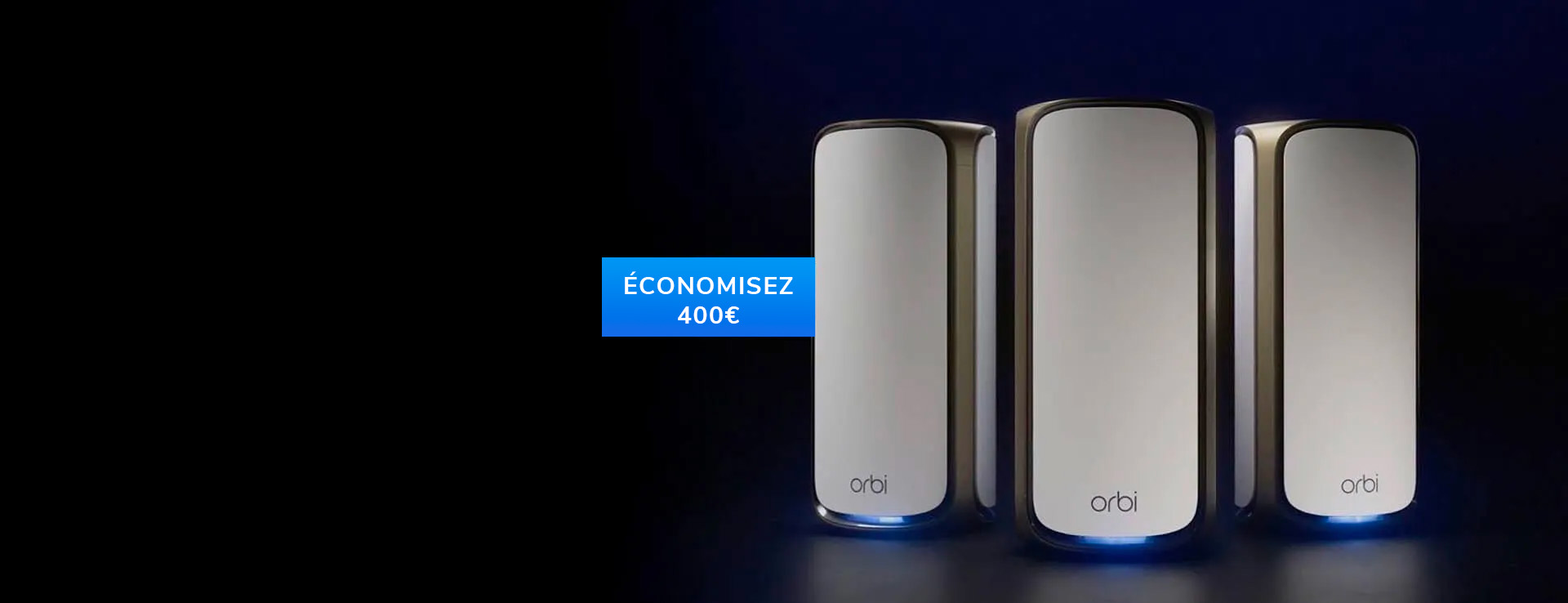 * La remise de 10% est valable pour une utilisation unique sur un seul article, sur la boutique en ligne NETGEAR, et pour une réduction maximale de 100€. Peut être appliquée à tous les produits NETGEAR, à l'exclusion des services et des switches ProAV. Non cumulable avec d'autres offres. Limitée à une utilisation par client. Vous pouvez vous désinscrire de notre liste de diffusion à tout moment. Merci de consulter notre Politique de confidentialité pour plus d'informations.