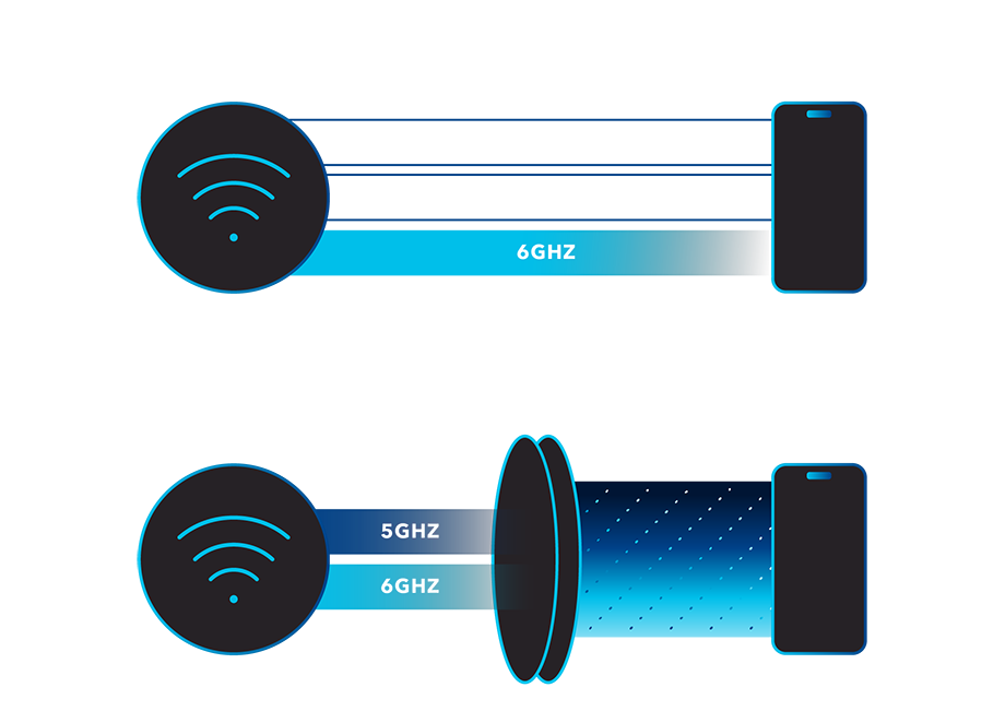 Le WiFi 7 permet d’être simultanément sur les bandes WiFi 6GHz et 5GHz pour éviter la congestion du réseau et vous garder connecté si vous vous déplacez hors de portée d'une des deux bandes. Cette fonction, appelée fonctionnement multi-liaison, permet également aux appareils d'envoyer et de recevoir simultanément des données sur les deux bandes WiFi, augmentant ainsi le débit.