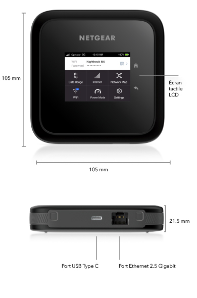 • Routeur mobile 5G Nighthawk® M6 et sa batterie (MR6150)