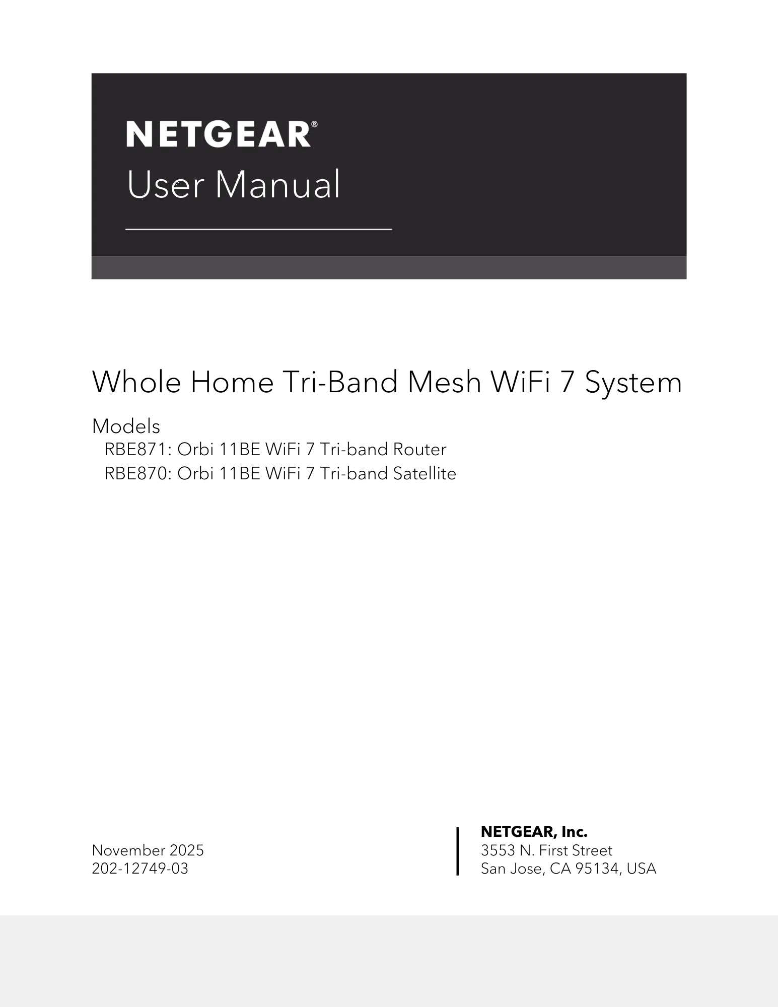 Satellite additionnel pour système Mesh WiFi 7 Orbi Série 870, Blanc (RBE870)