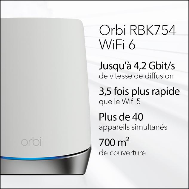 Système Mesh Tri bande Orbi WiFi 6, jusqu'à 4,2 Gbit/s, Routeur + 3 Satellites (RBK754)