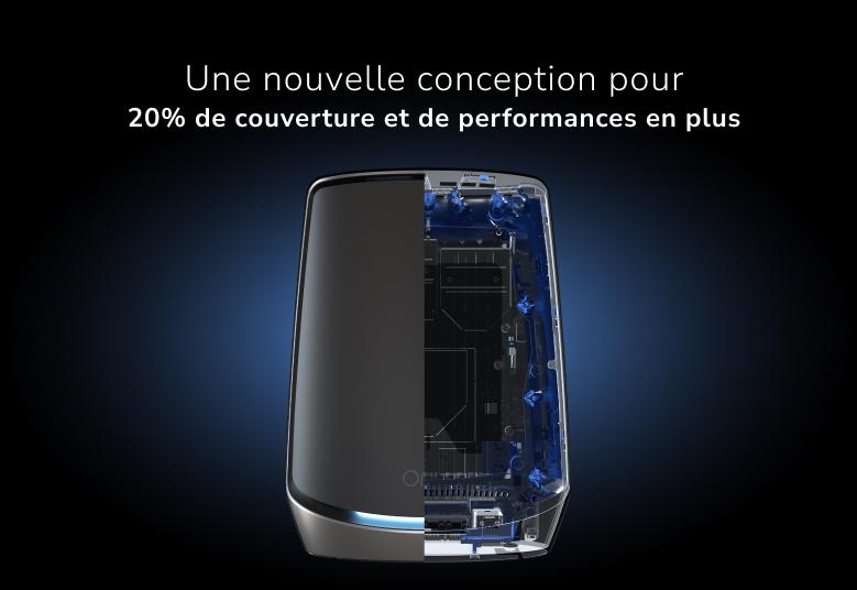 La taille des systèmes Orbi permet d'optimiser les connexions WiFi. De plus, ils disposent d'antennes brevetées qui garantissent un WiFi de qualité supérieure dans toute la maison. Ces nouvelles antennes accroissent le débit de 20% et augmentent la couverture par rapport aux systèmes de génération précédente.