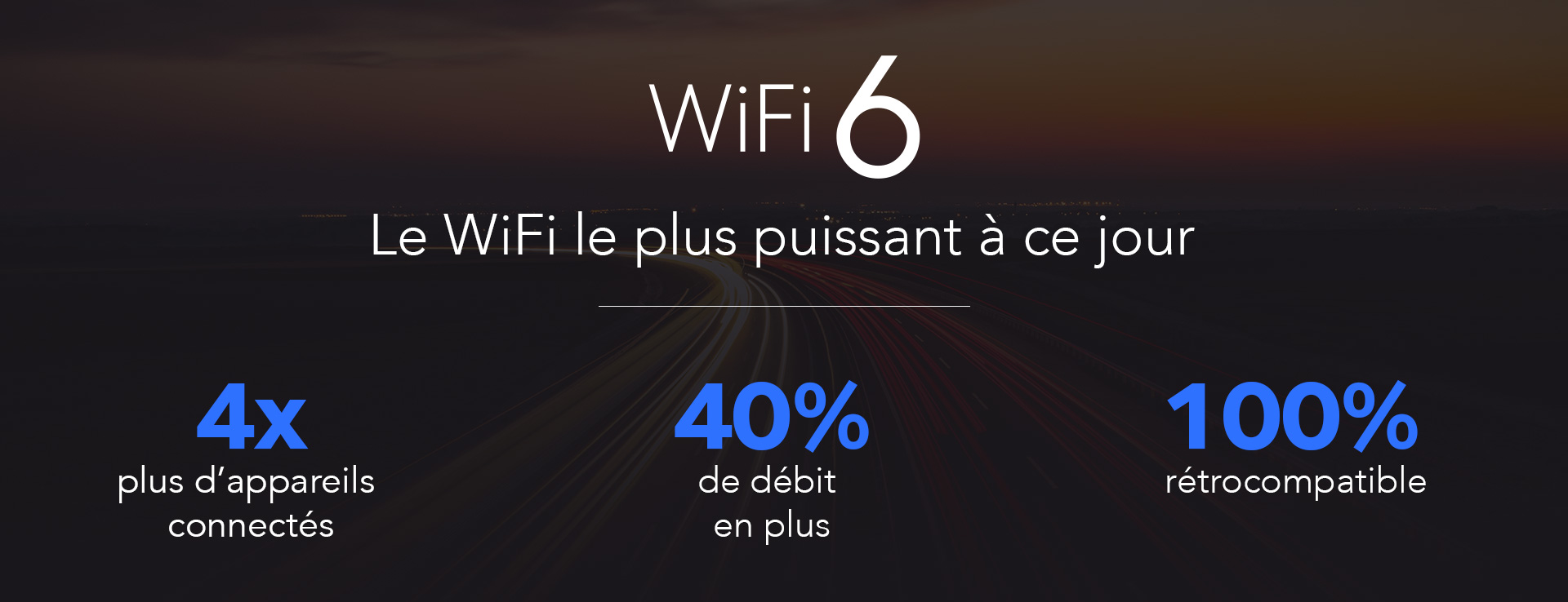 Rétrocompatible avec le WiFi 5 (802.11ac) et les normes WiFi précédentes