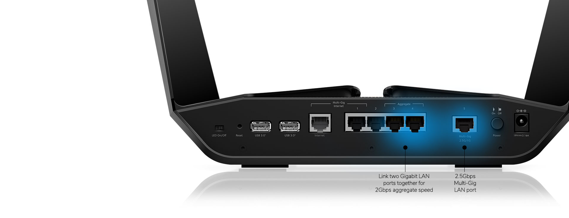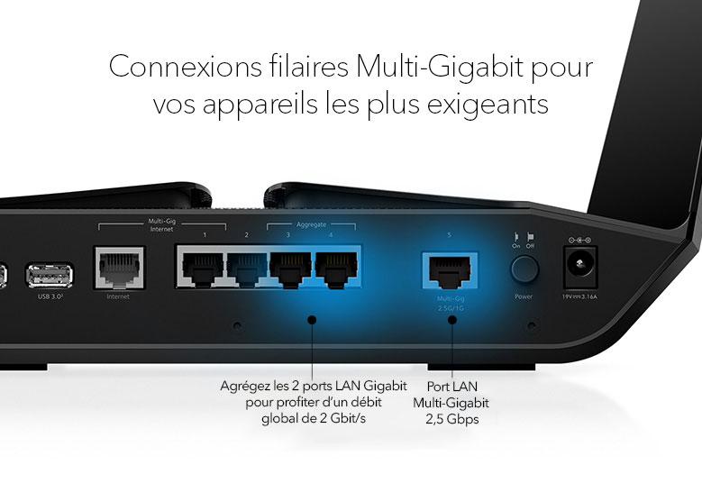 Utilisez le port Ethernet 2,5 Gigabit ou l'agrégation de ports pour profiter de débits Multi-Gigabit. Connectez plus de périphériques filaires grâce aux 4 ports Gigabit Ethernet.