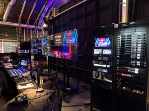 La vitesse à laquelle Fox et son équipe doivent travailler est incroyable. « Nous sommes en train de créer un spectacle en direct et avançons rapidement. Tout doit être ultra rapide, et je dois être sûr que tout fonctionnera exactement comme je le souhaite dès que j’appuie sur un bouton. Nous devons impérativement avoir un contrôle total du spectacle et celui-ci doit être fluide. S’il y a un problème, mon équipe ou moi disposons d’une fenêtre de 90 à 120 secondes pour le résoudre. » Fox agit depuis la salle de contrôle des Battlebots afin de pouvoir gérer simultanément les médias, le système de replay et le switch, dans le pire des cas. Lors d’un spectacle normal, un technicien et une équipe de cinq caméras sont en marche dans l’arène. « Notre environnement est conçu pour limiter les dégâts et reprendre rapidement. En cas de problème, mon équipe ou moi pouvons les résoudre immédiatement. »