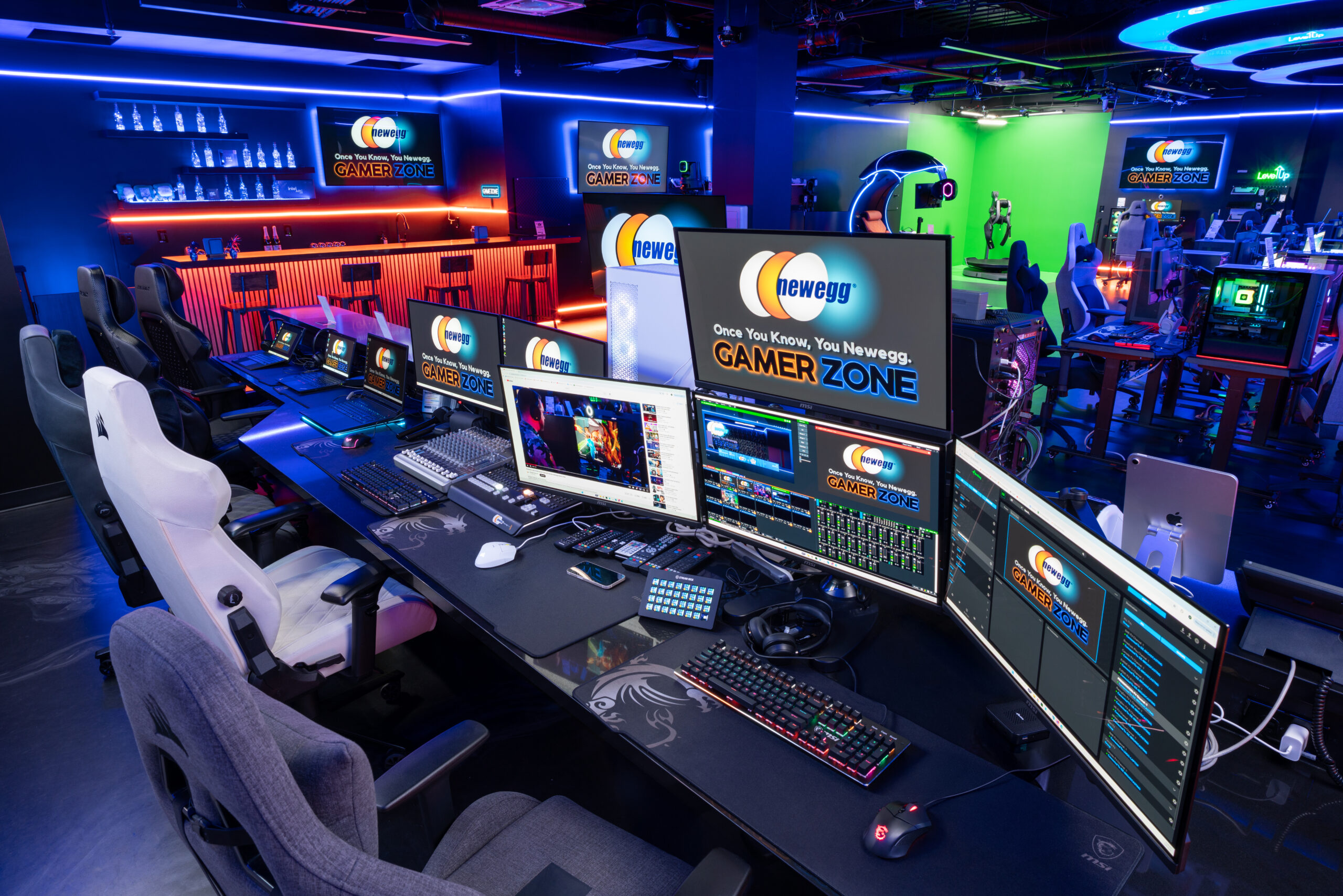 La Gamer Zone de Newegg est une arène de jeu de 2 300 pieds carrés équipée de dizaines de stations de jeu haute performance, de matériel de streaming et de capacités de diffusion.