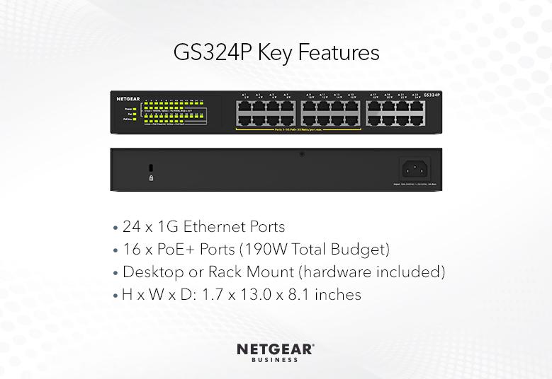 - 型號說明 : NETGEAR 24埠千兆以太網非網管PoE+交換機,帶16埠PoE+(380瓦)