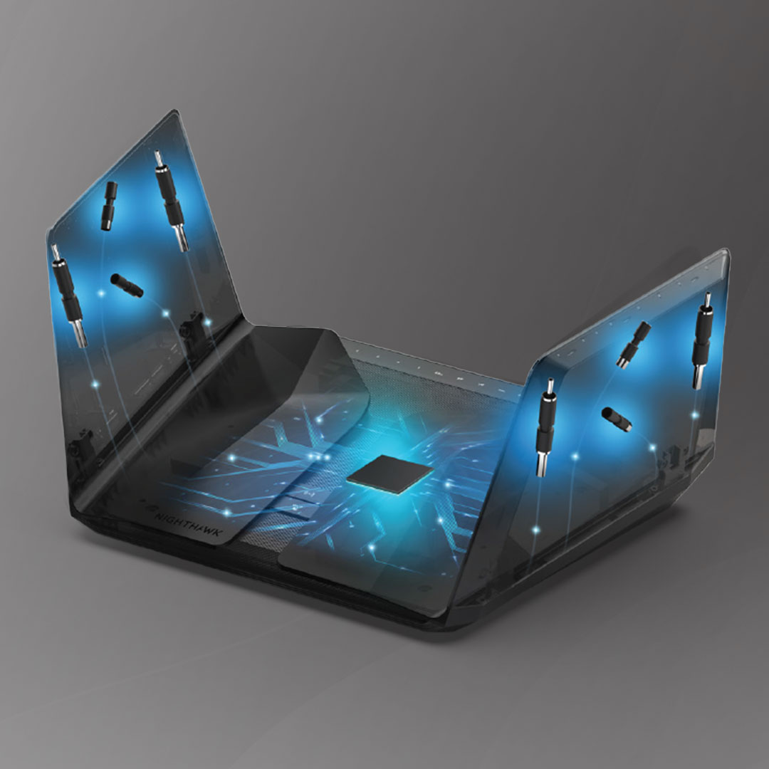 RAXE500包括專有WiFi優化和八個位置最佳的天線,可提供更大的容量,更強大,更可靠的連接,並減少對設備的干擾