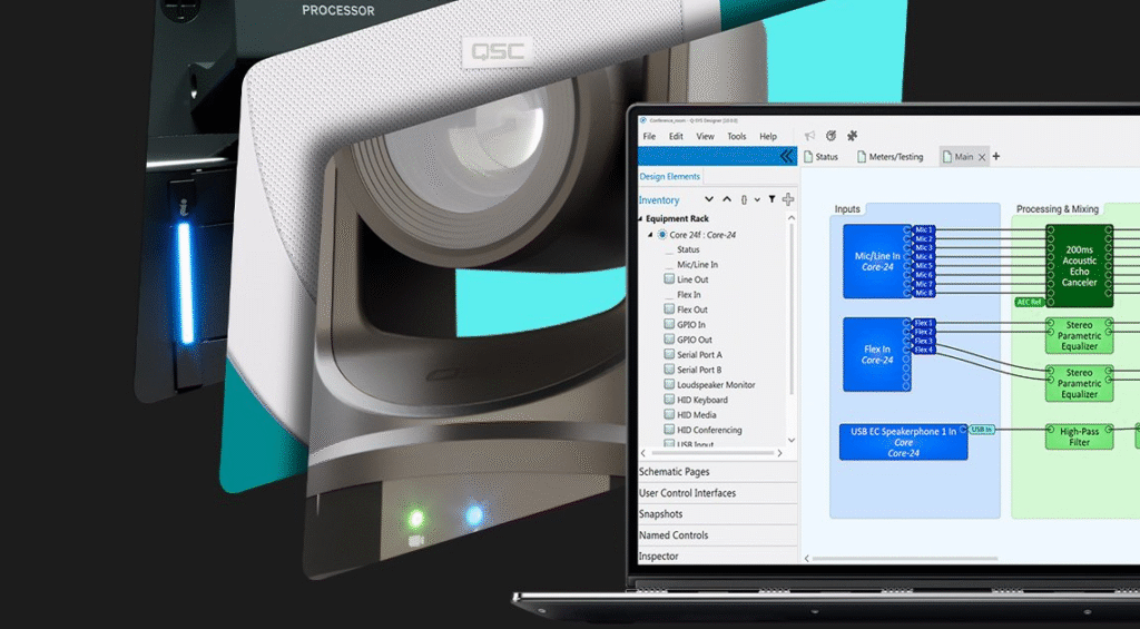 This integration ensures that network infrastructure and AV technology work together seamlessly, with Q-SYS serving as the centralized brain for audio, video, control, and network management functions. The result is a complete ecosystem where IT-standard protocols enable easy integration with modern network infrastructure while maintaining the specialized performance requirements of professional AV applications.