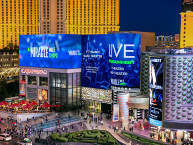 Digital displays are transforming the shopping experience at the Miracle Mile Shops in Las Vegas. With giant LED displays and interactive AV kiosks, visitors enjoy a visual feast.