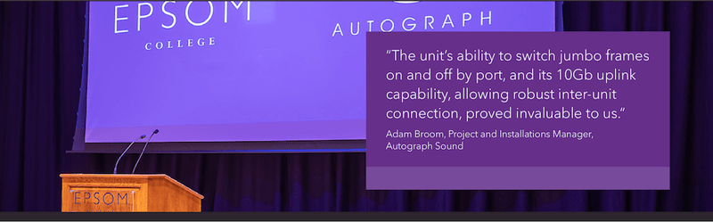 “With the help of NETGEAR switches, we were able to install a fully-integrated, centrally-controlled networked system that is perfect for a contemporary education facility.” Says Adam. Together with the other elements, plus Autograph’s excellent expertise and experience, Epsom College can now be confident it has a sophisticated yet highly manageable AV system for years to come.