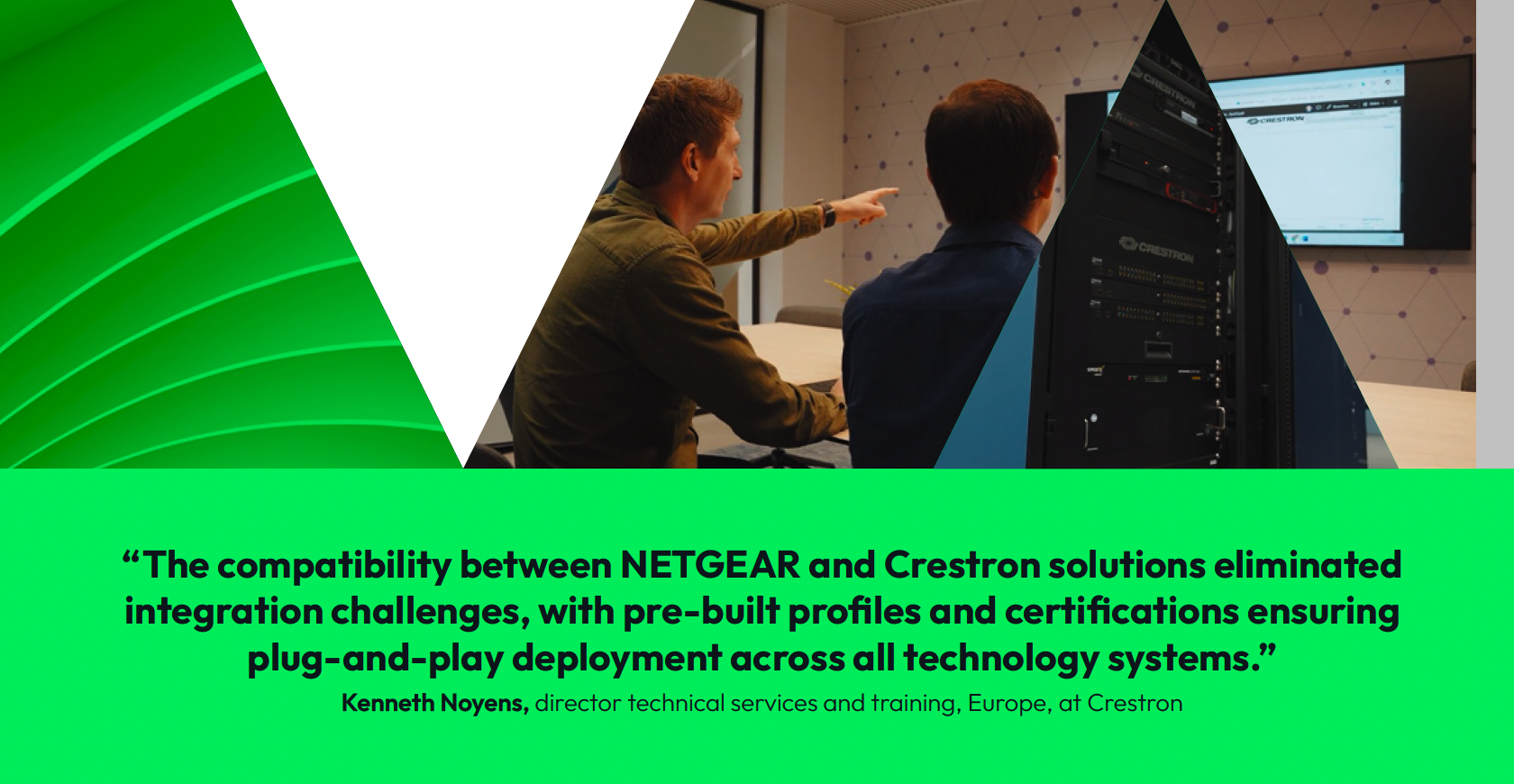 “The compatibility between NETGEAR and Crestron solutions eliminated integration challenges, with pre-built profiles and certifications ensuring plug-and-play deployment across all technology systems,” explains Kenneth Noyens.