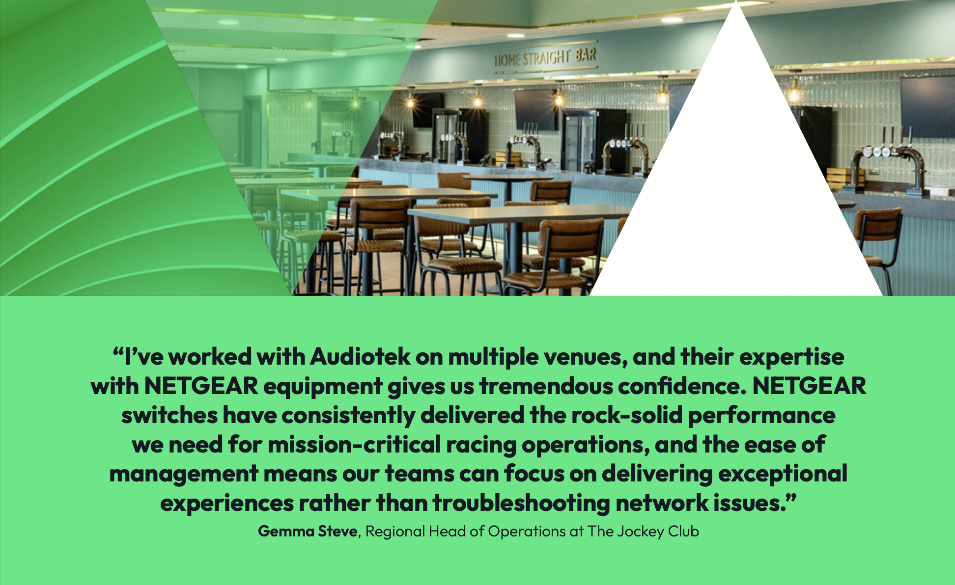 “I’ve worked with Audiotek on multiple venues, and their expertise with NETGEAR equipment gives us tremendous confidence. NETGEAR switches have consistently delivered the rock-solid performance we need for mission-critical racing operations, and the ease of management means our teams can focus on delivering exceptional experiences rather than troubleshooting network issues.”