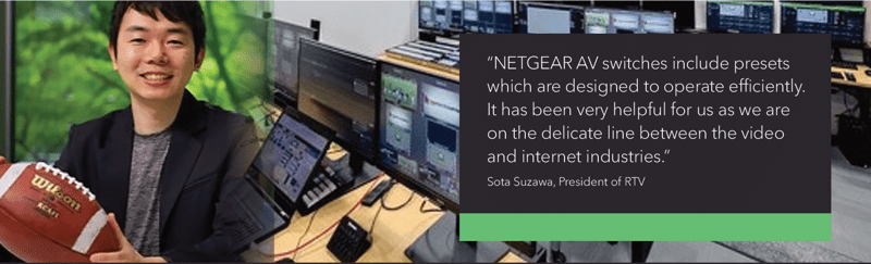 In this case-study we asked Sota Suzawa, president of RTV, about the benefits of NETGEAR AV products and the current state and future vision of AV over IP in online live streaming.