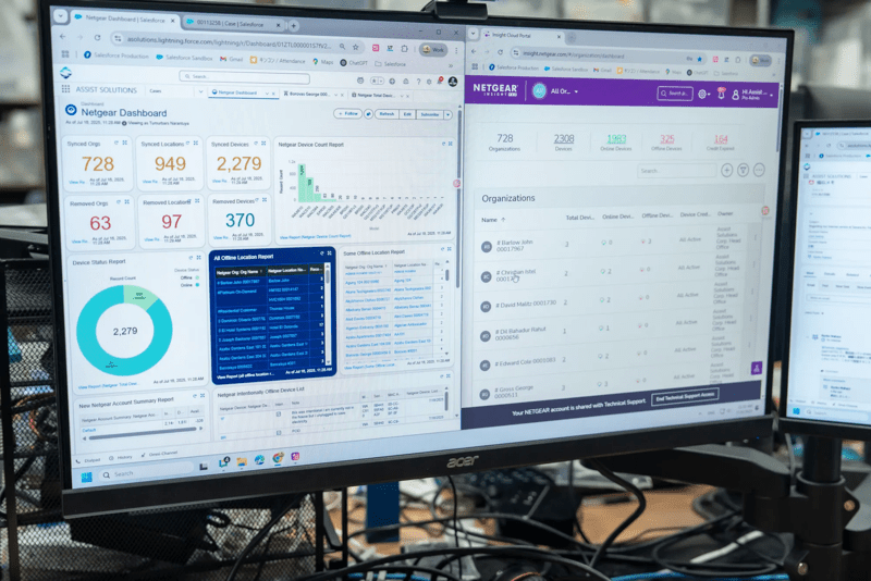 A key component of the solution was the integration of NETGEAR Insight APIs with Salesforce. By connecting the two platforms, customer records created in Salesforce are automatically reflected in the NETGEAR management environment. Device information and license status can now be tracked directly within Salesforce, eliminating duplicate data entry and improving cross-team visibility.