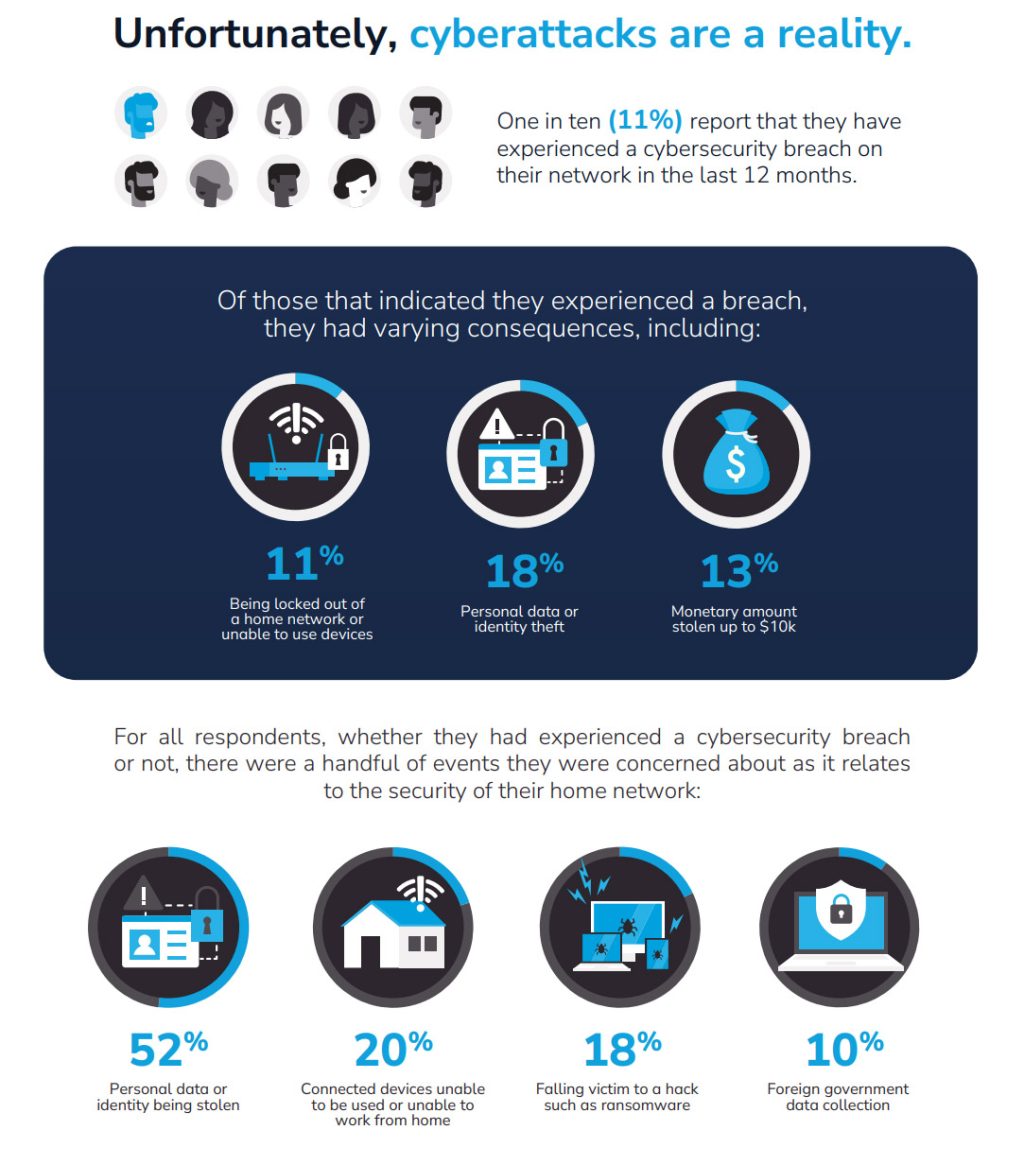 While threats are prevalent, not all consumers are taking the necessary precautions to protect themselves. One in 10 report that they have never taken a proactive measure to secure their home network. The survey also found that 65% of people use the same password across at least two accounts, with over one in four (27%) using the same password for six accounts or more. One-quarter also reported rarely or never changing their password after being notified of a breach to an account. This means that many are exposed.